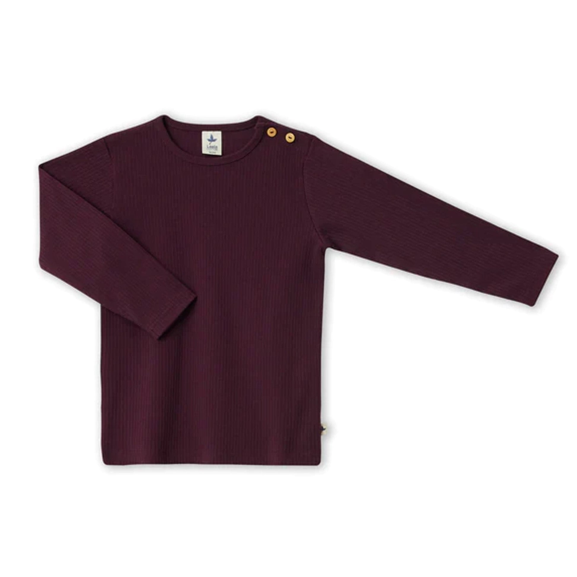 Dettaglio: Chiusura bottoni di legno su spalla fino alla taglia 98/104 cm